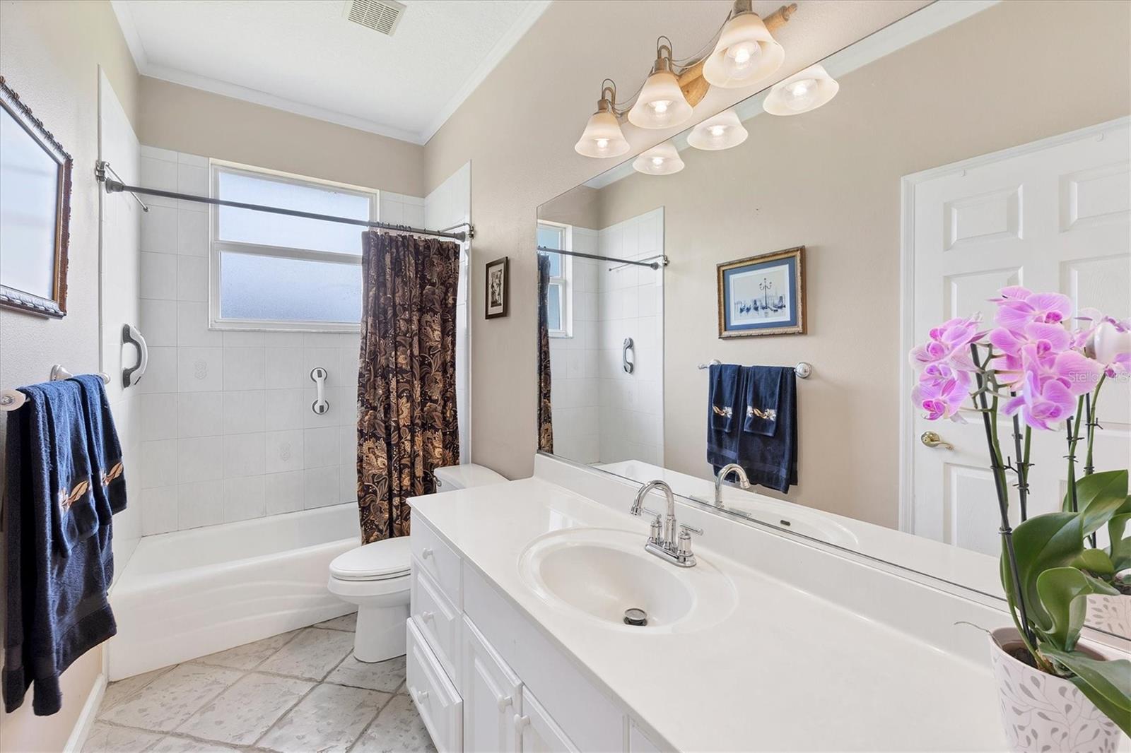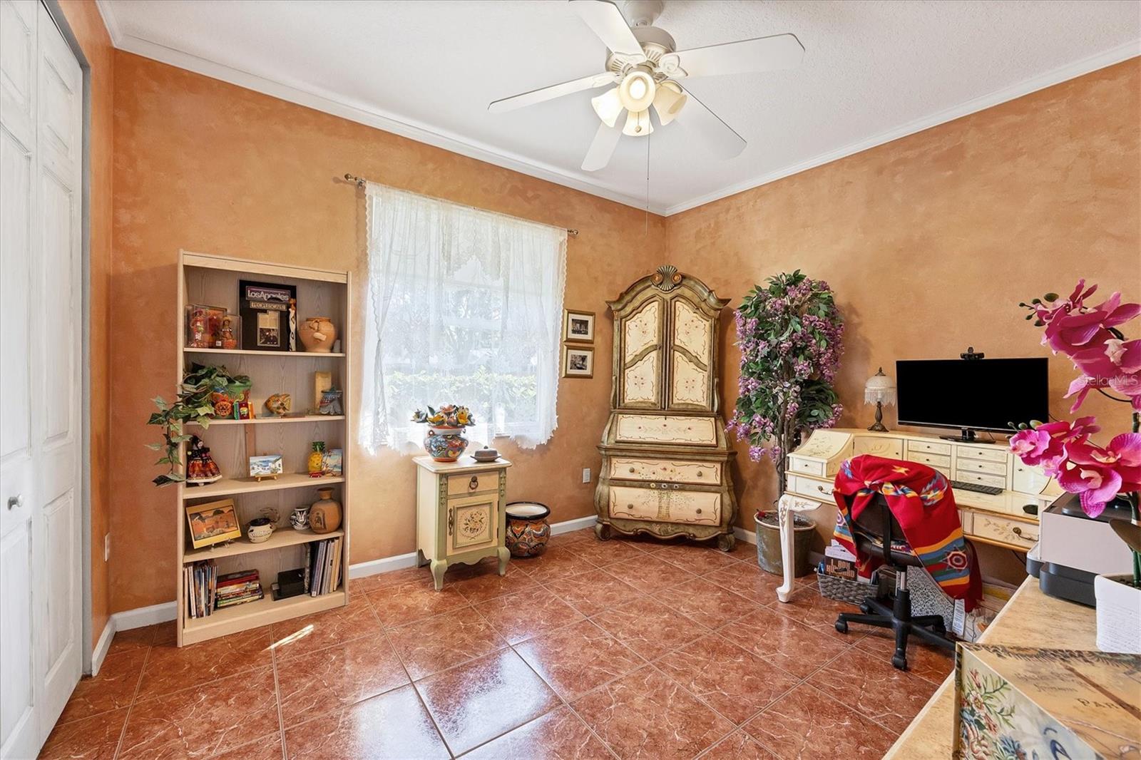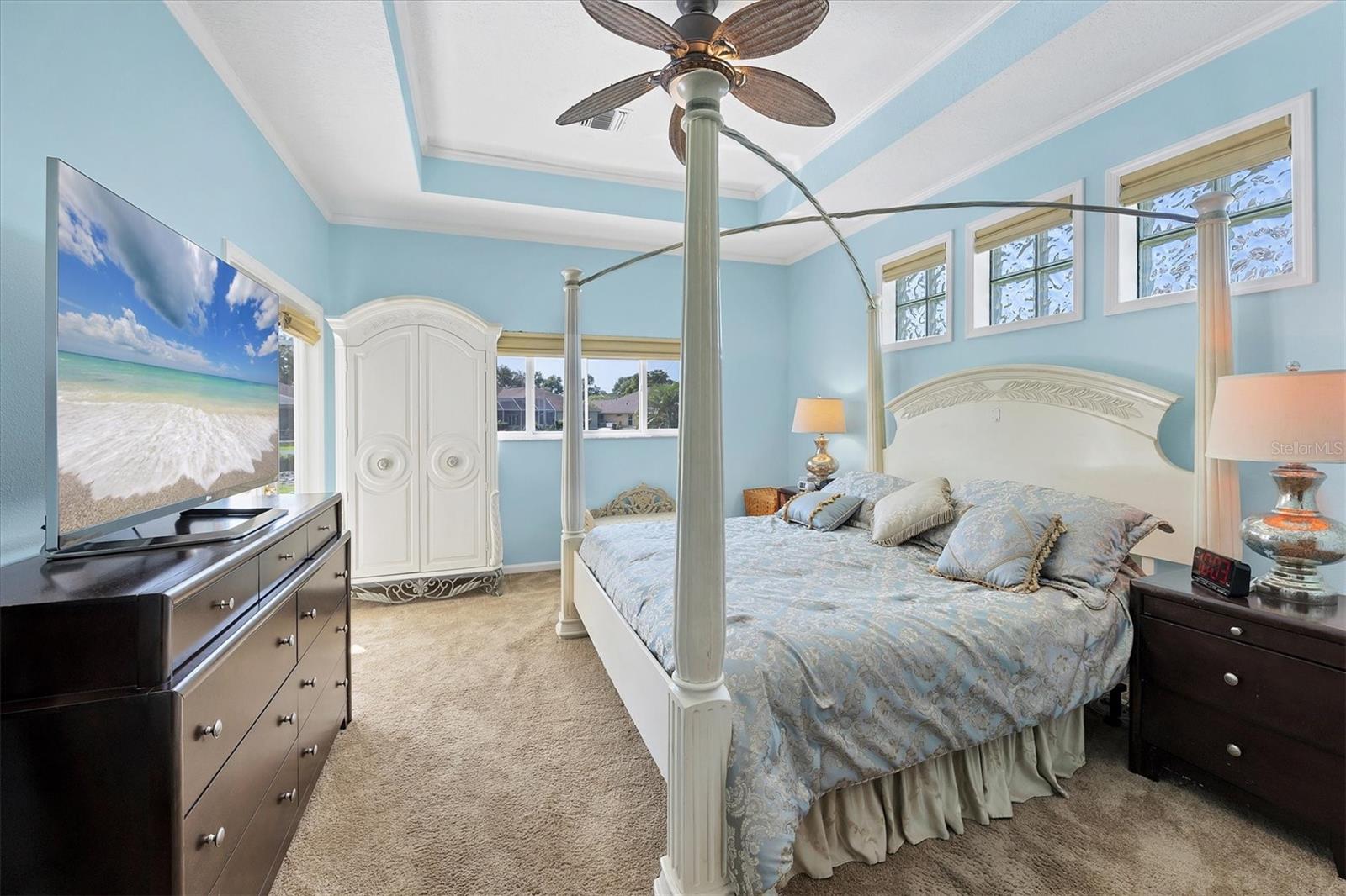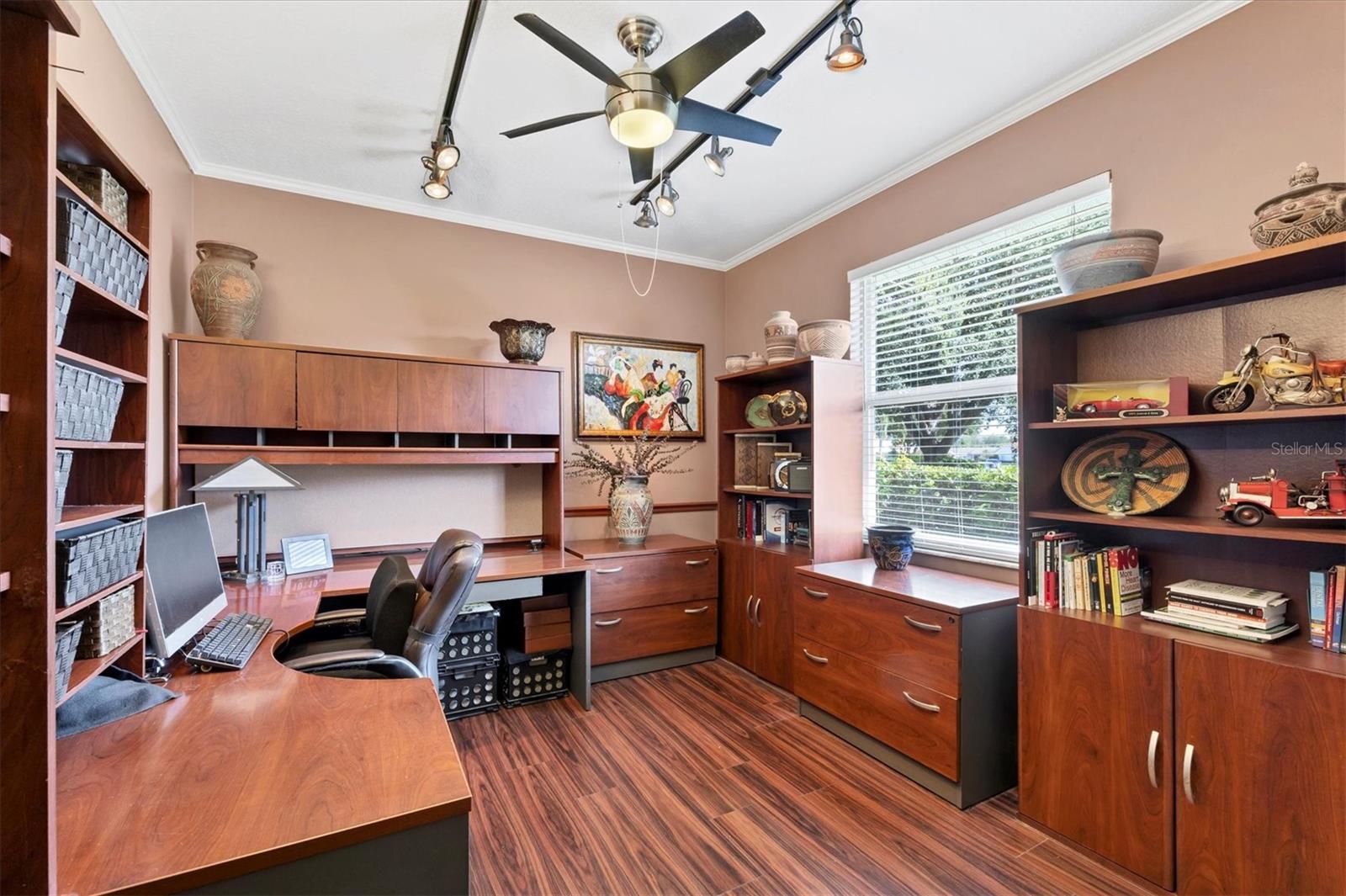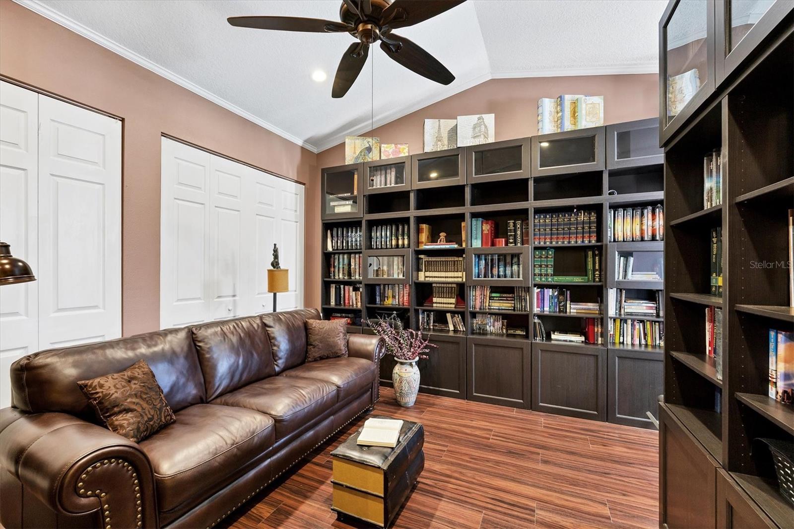 Welcome to 5786 Sandy Pointe Drive, a beautifully maintained lakefront pool home in Grove Pointe--one of Sarasota's established and central neighborhoods. From the moment you go inside, your eye is drawn to the tranquil water views of the pool and where the shimmering lake becomes a daily backdrop for relaxation and outdoor living. With four bedrooms, three full baths and a den, this single-level residence offers a flexible layout that suits everyday living and easy entertaining. Go inside and you're welcomed by a comfortable living area with tray ceilings, crown molding, recessed lighting and a wood-burning fireplace. Sliding glass doors open to the lanai, filling the space with natural light and providing a beautiful view. The adjoining dining room features an arched front window, classic chandelier and decorative trim, ideal for family dinners or gatherings. The kitchen is functional and charming, with white raised-panel cabinetry, granite countertops and backsplash, stainless steel appliances, and a breakfast bar with pendant lighting. Just off the kitchen, a built-in breakfast nook adds character. A set of French doors opens to a den that's ideal for a home office, complete with built-in bookshelves, crown molding and a large arched window. The split-bedroom floor plan offers privacy, with the primary suite tucked away and featuring French doors to the pool, transom windows, a walk-in closet and a spacious en-suite bath with soaking tub, glass block shower, dual vanities, and a private water closet. Two spacious, well-appointed guest bedrooms sit on opposite side of the home with a shared nearby guest bath includes a tub/shower combo and vanity. The third guest suite doubles as a large bonus room with built-in cabinetry, en-suite bath with pool access and generous closet space, ideal for guests, a media room or playroom. Outside, the screened lanai invites you to relax and unwind, with lighting, and access from the primary suite, living room and bonus room. The rectangular pool has been recently resurfaced and upgraded with new tile and a heater (2024), while the backyard offers privacy and a peaceful view of the lake. Additional highlights include a functional laundry room with storage and a two-car garage. The home is equipped with laminate flooring in main areas, spray foam attic insulation, energy-efficient solar panels (2022), a new HVAC system (2025), whole-house water filtration system and an asphalt, shingle roof (2018). In a quiet, tree-lined neighborhood, Grove Pointe is known for its convenient location. You're minutes from Interstate 75, top-rated schools and local parks. Siesta Key's world-famous beaches, downtown Sarasota, the Legacy Trail and University Town Center are all just a short drive away. This is a great opportunity to enjoy a spacious, move-in-ready home in one of Sarasota's desirable areas offering comfort, value and potential all in one.